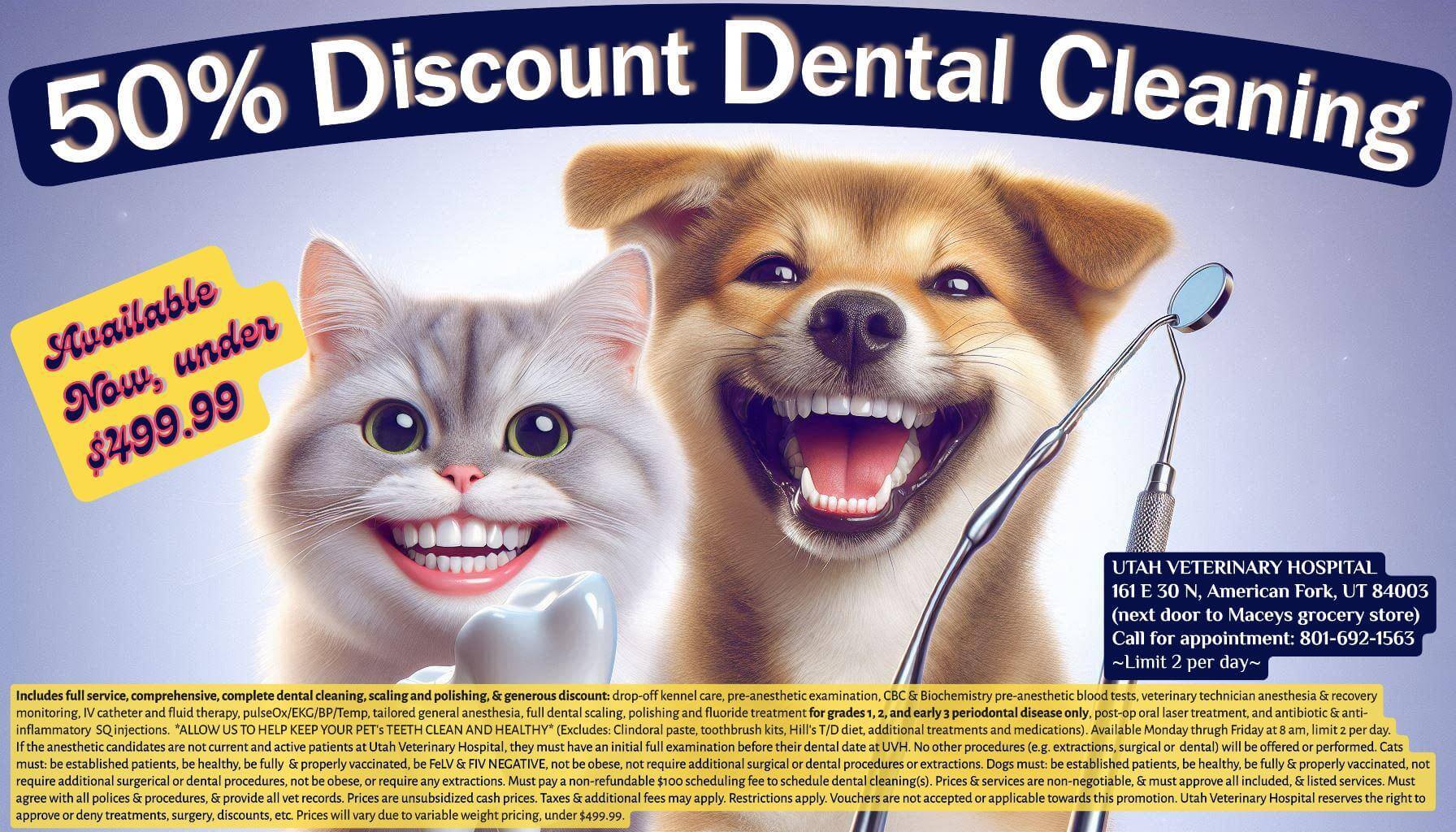 - Discounted Dental Treatment Packages that include all your pet needs for such dental procedure (preanesthetic examination, hospital intake and kennel, designated technician care, IV catheter, full anesthesia, professional dental scaling/polishing/fluoride treatment procedures with equipment and full monitoring, electrocardiogram with pulseOx and tooth-paste kit – Average savings over $100